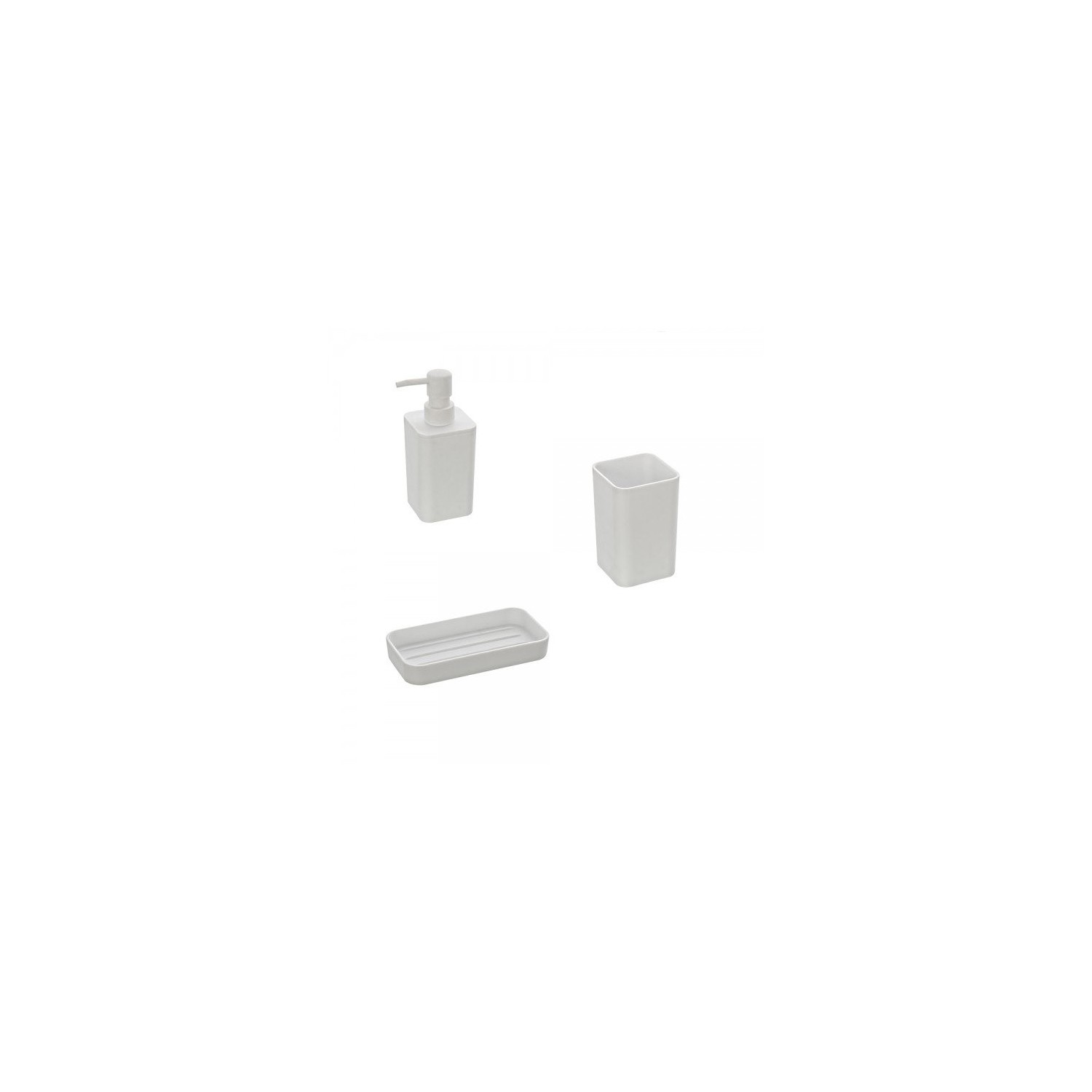 DESCRIZIONE set 3 pz in plastica PP: dispenser, portaspazzolino e portasapone, colore bianco