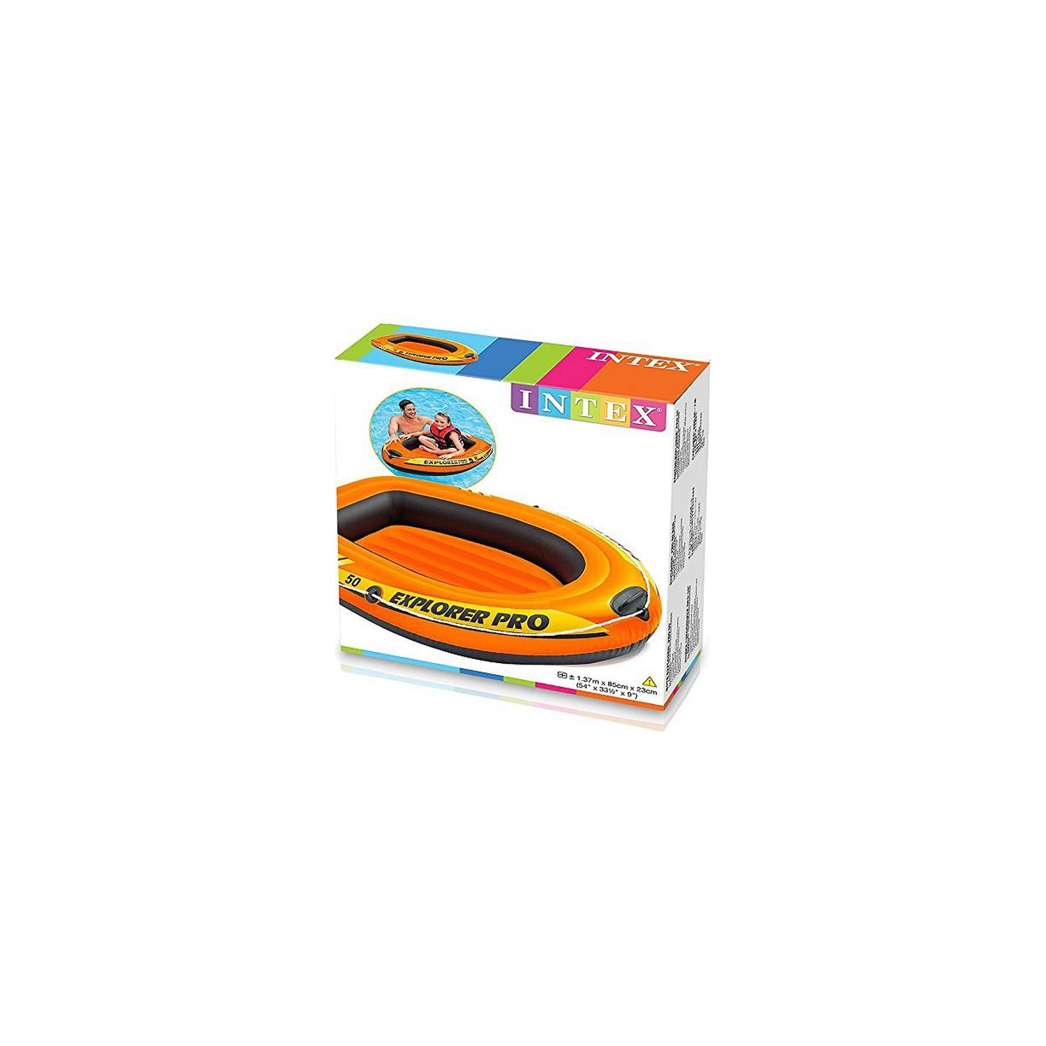 Canotto Explorer Pro 50 Cm 137X85X23. Caratteristiche tecniche: Ideale per 1 Persona. Portata massima 80 kg. 3 camere d'aria inclusa quella ausiliaria interna allo scafo. Fondo gonfiabile con struttura I-BEAM per maggiore confort. Anelli lungo tutto il perimetro per la corda. Colore Arancione. Età consigliata anni 6+.
