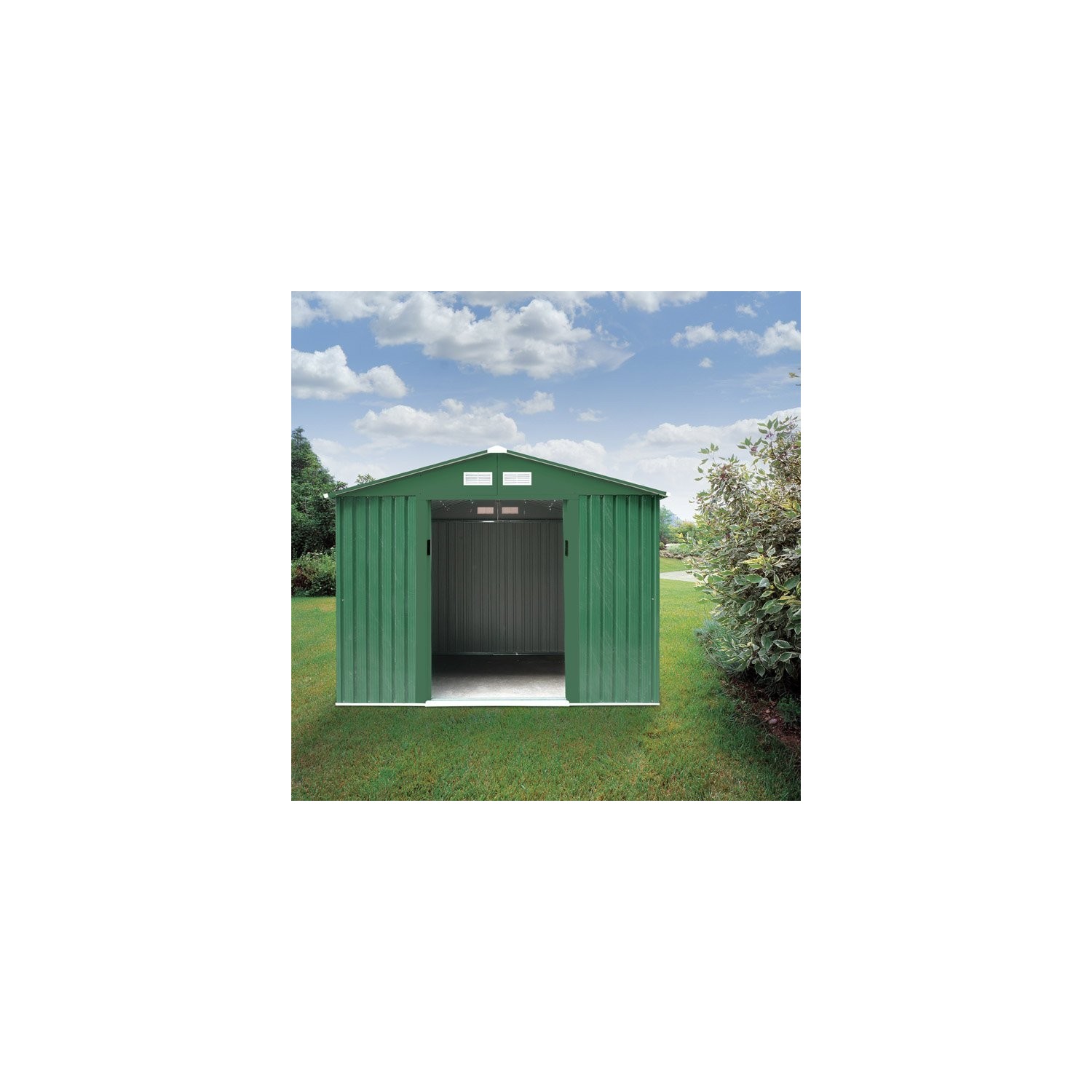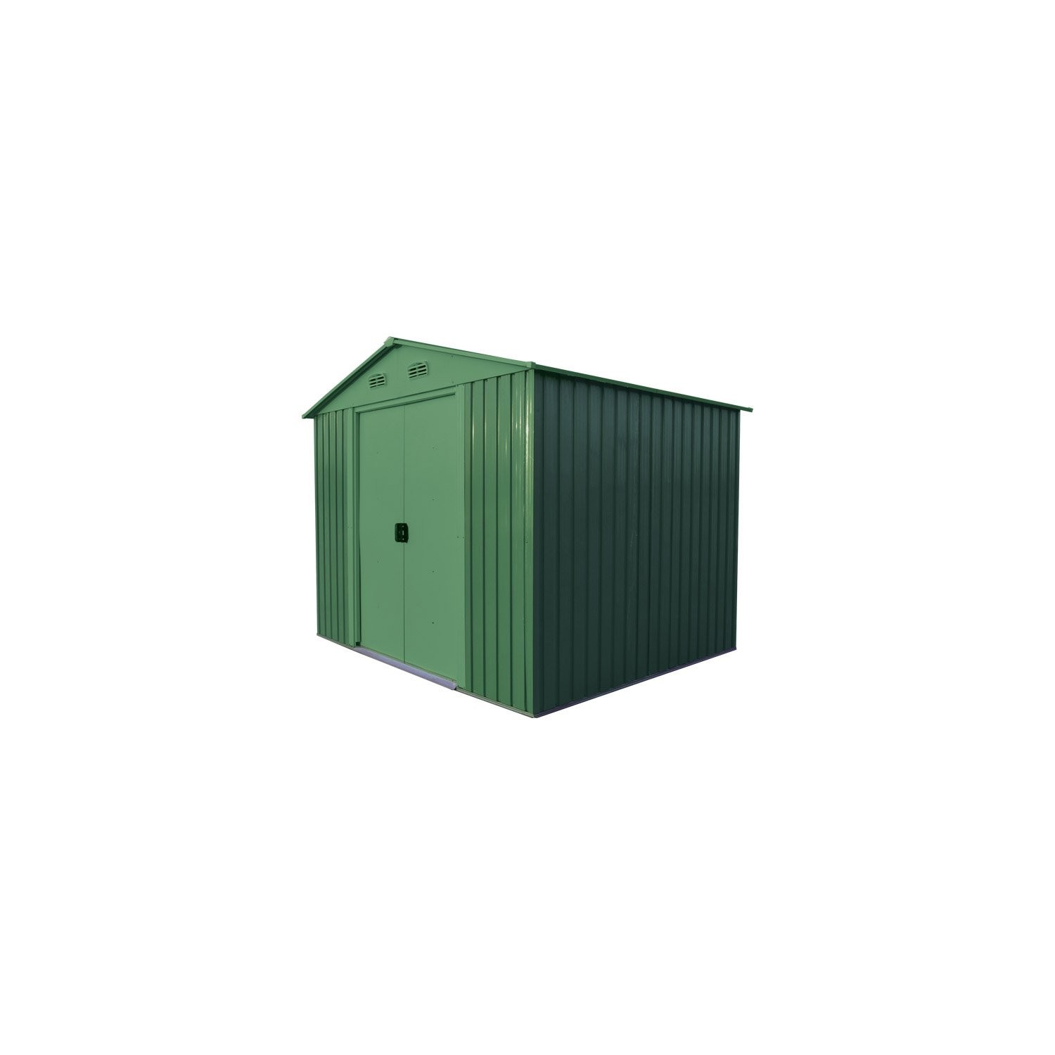 Casetta box da giardino con tetto a due falde, realizzata in lamiera (0.25 mm) zincata e verniciata.