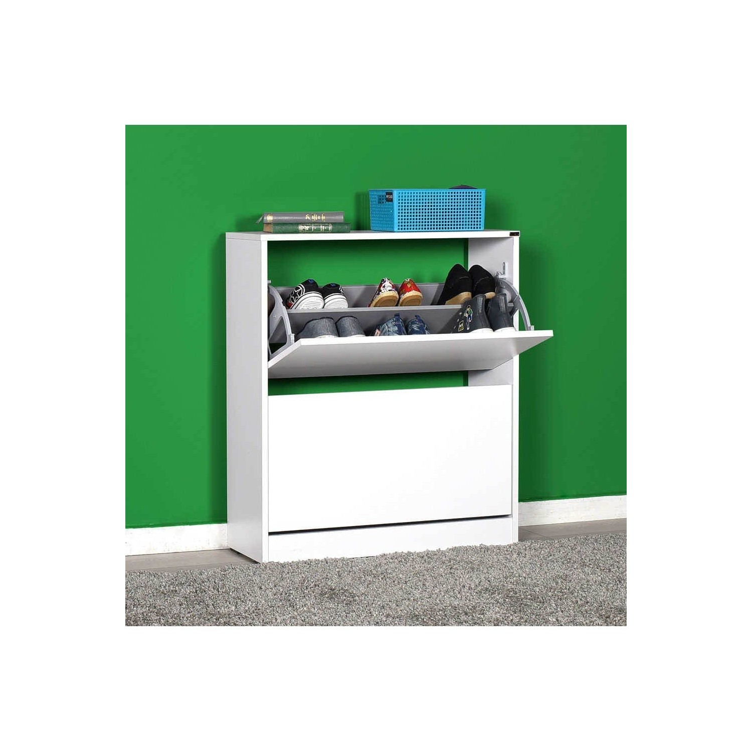 Scarpiera a due ante a ribalta Colore bianco lucido. Misure in cm.: L 73 X H 84 X P 26