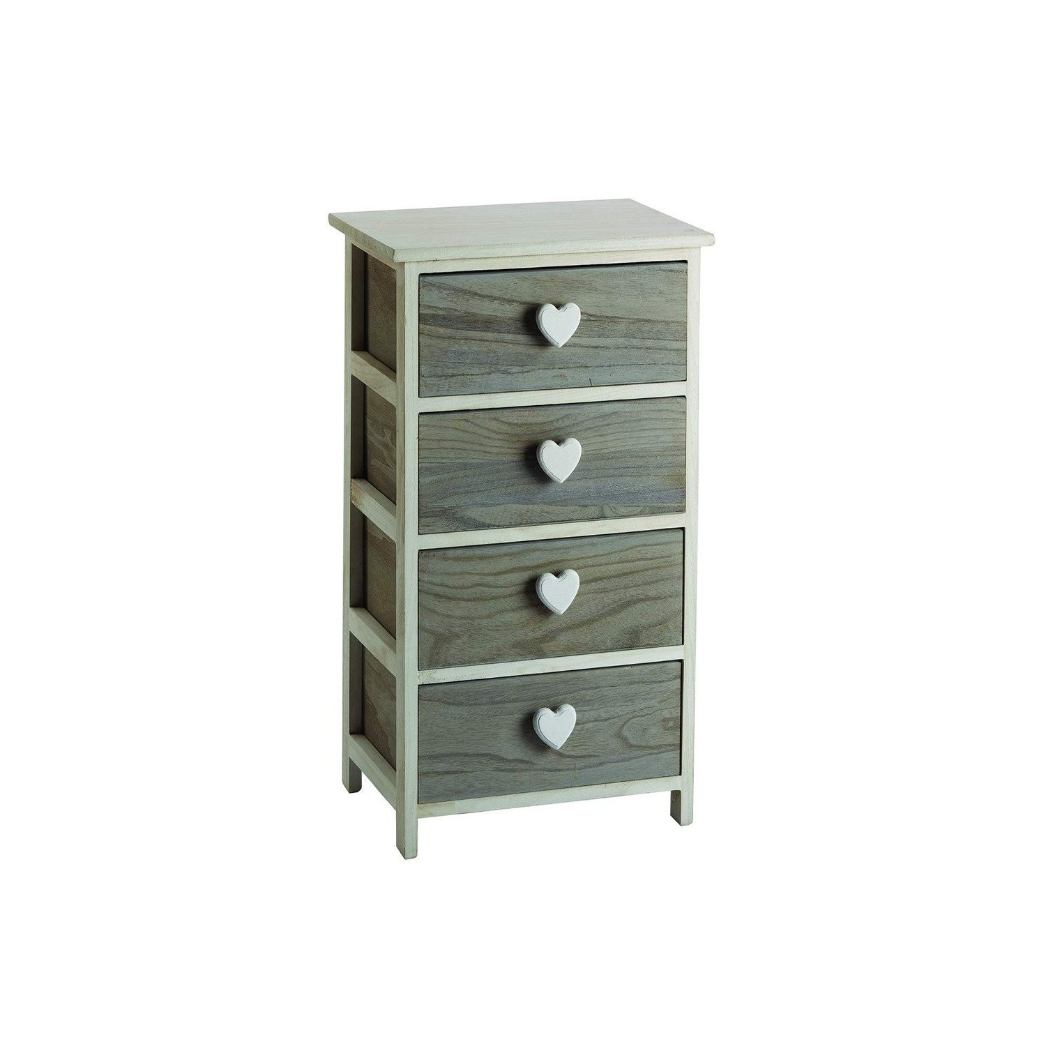 Cassettiera Colore bianca e grigia Con pomoli a cuore Prodotto in legno di Paulownia Con 4 cassetti