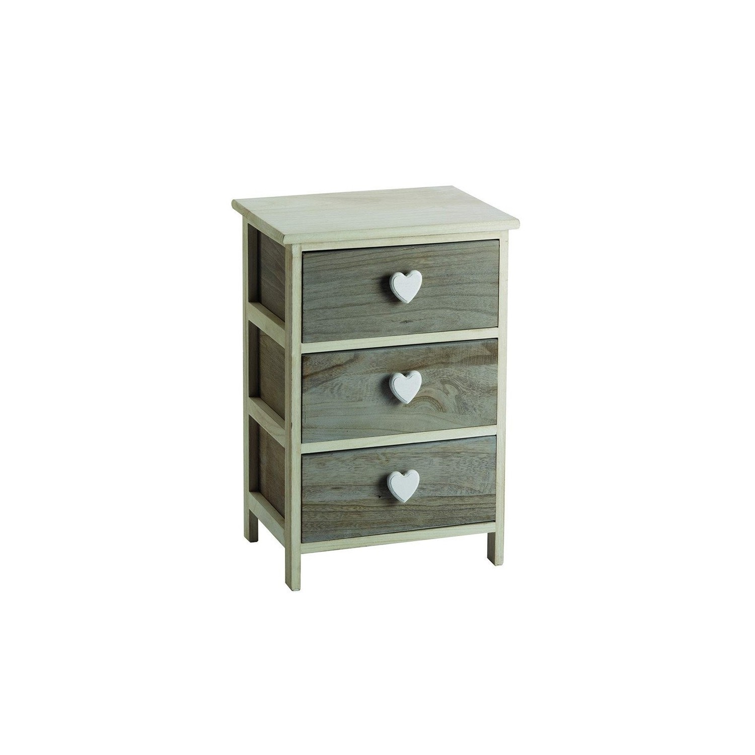 Cassettiera Colore bianca e grigia Con pomoli a cuore Prodotto in legno di Paulownia Con 3 cassetti
