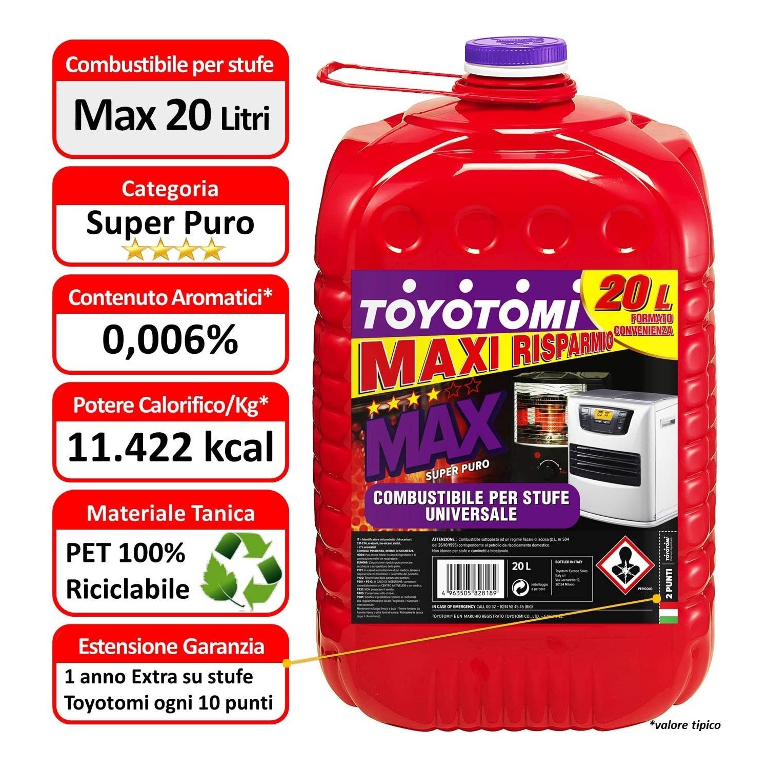-Le taniche toyotomi sono di pet, un materiale riciclabile e riutilizzabile al 100%; se recuperato, può dare vita a tanti nuovi oggetti, al contempo assicura qualità e purezza del composto