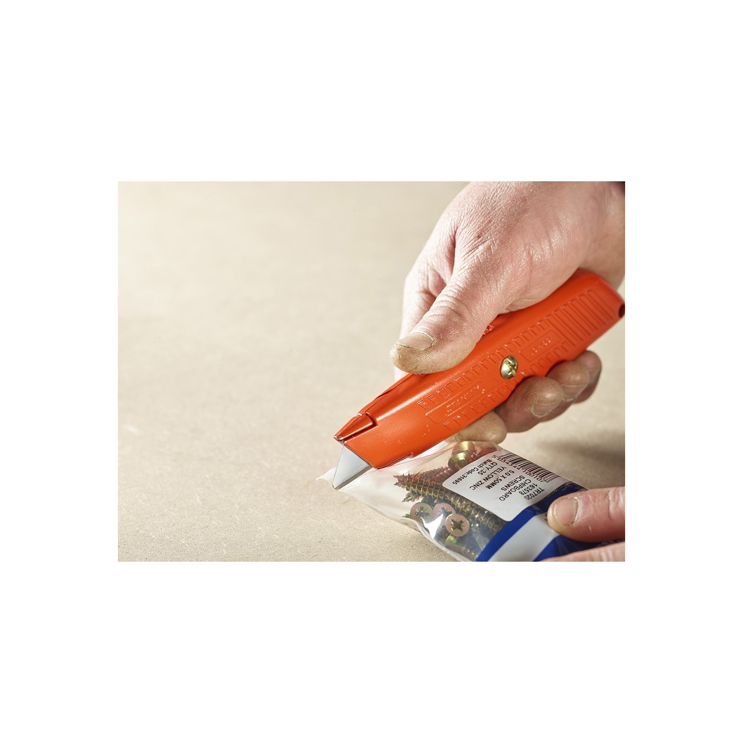 CARATTERISTICHE Per coltelli per antinfortunistica. Spessore: 0,60 mm. Dimensioni: 55 mm base maggiore x 33 mm base minore x 19 mm. altezza