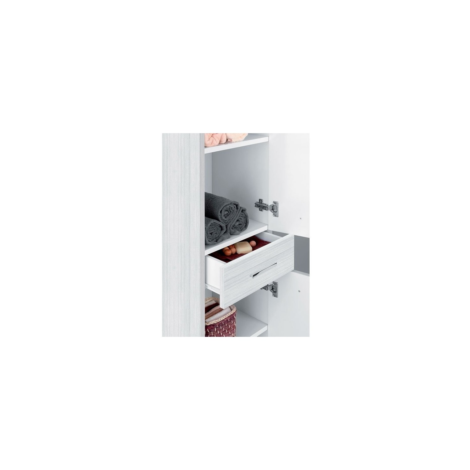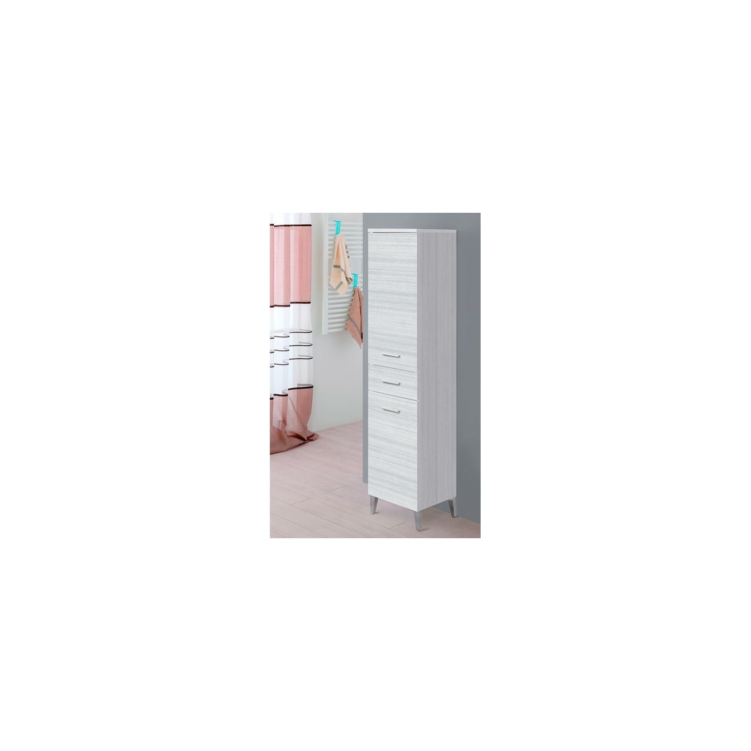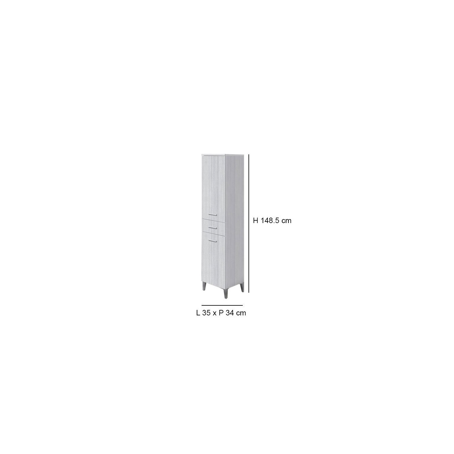 Colonna portasciugamani in nobilitato melaminico grigio 18 mm, due ante ed un cassetto Altezza 148.5 cm, Larghezza 35 cm, Profondità 34 cm colore Grigio