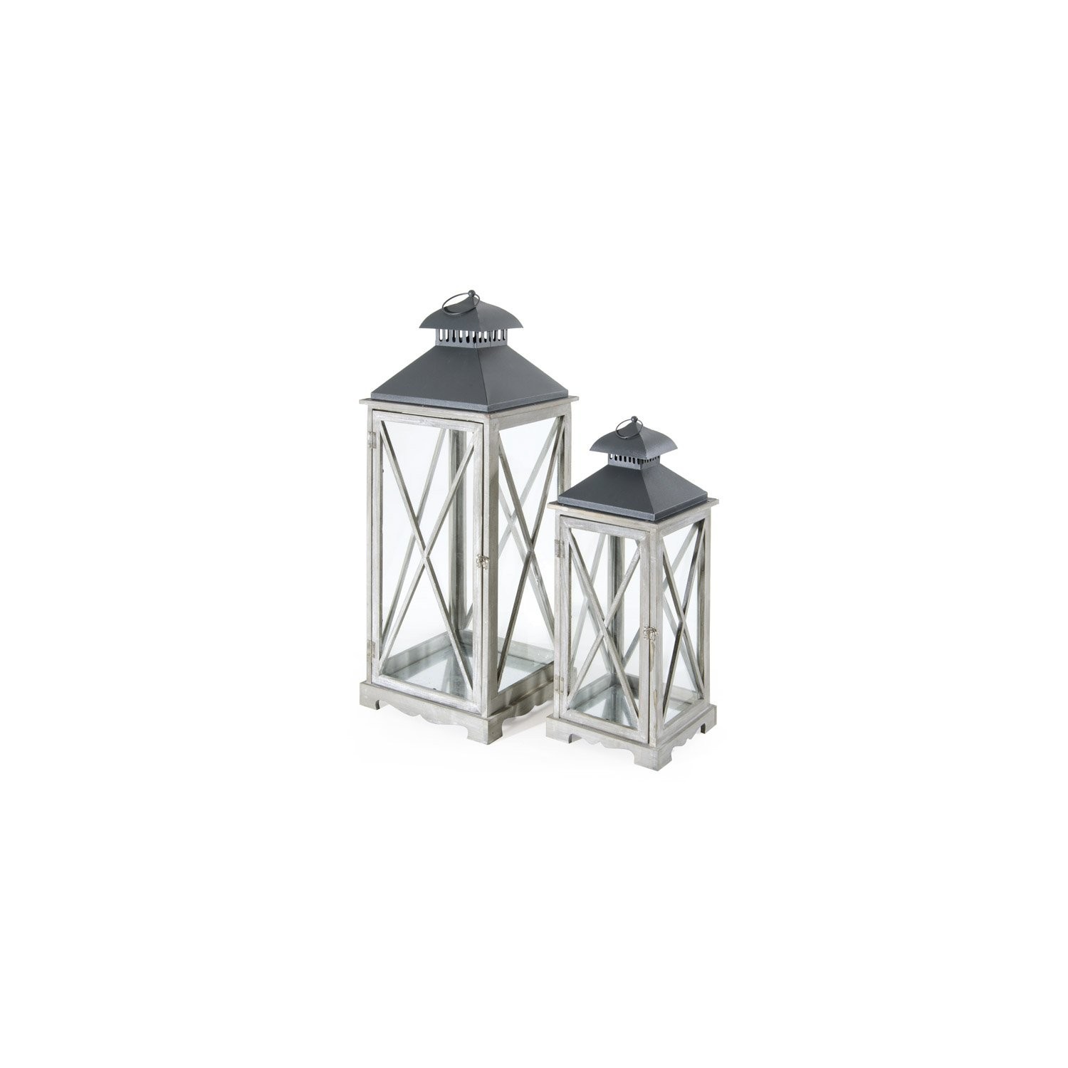 Lanterna in legno e metallo con vetri laterali. Dimensioni: media 24x24x65 cm Colore: bianco grigio VERDELOOK 910/37