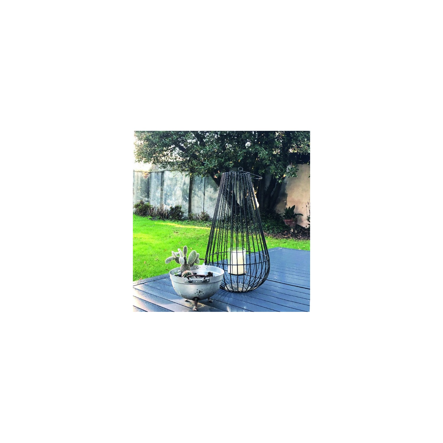Lanterna in metallo verniciato con portacandela in vetro. Dimensioni: Ø 13/32 cm - H. 60/74 cm. Vasetto interno Ø 9 - H. 12 cm.