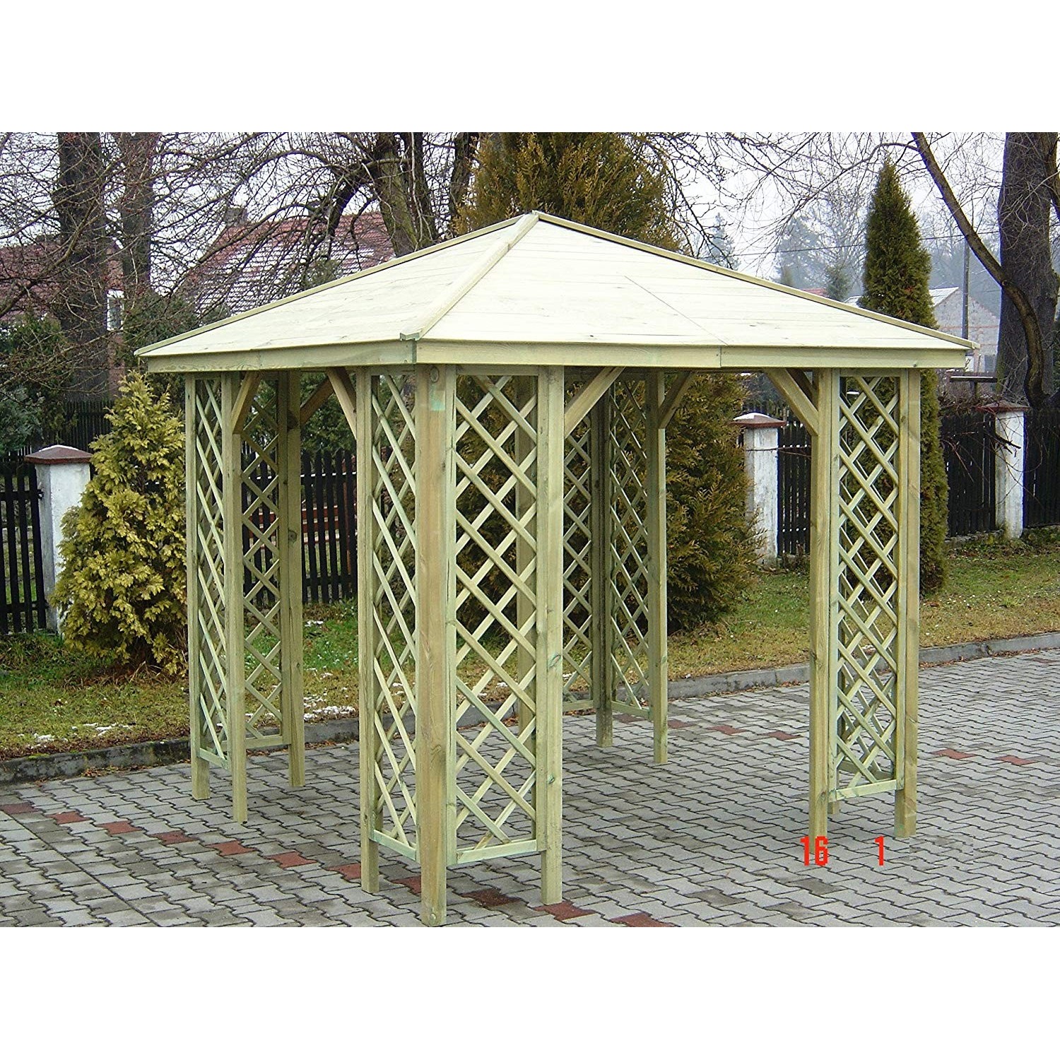 Crea piccoli angoli di relax nel giardino di casa tua, realizza un fantastico angolo accogliente e ombreggiato. Gazebo realizzata in pino massello impregnato in autoclave. Il trattamento impregnante consiste nell'immersione del legno in una soluzione salina a pressione che permette alle cellule del legno di aprirsi per assorbire meglio la soluzione impregnante che salvaguardano il legno dagli agenti atmosferici, funghi, muffe, insetti.