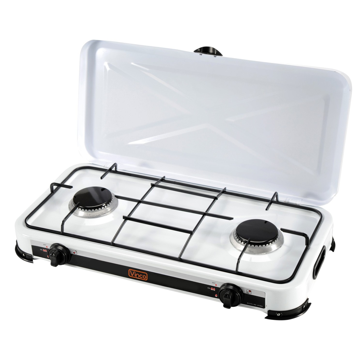 Fornello a gas (GPL) per uso esterno Vinco a due fuochi per cucinare all’aperto. Dotato di valvola in rame e piedini d’appoggio in gomma.