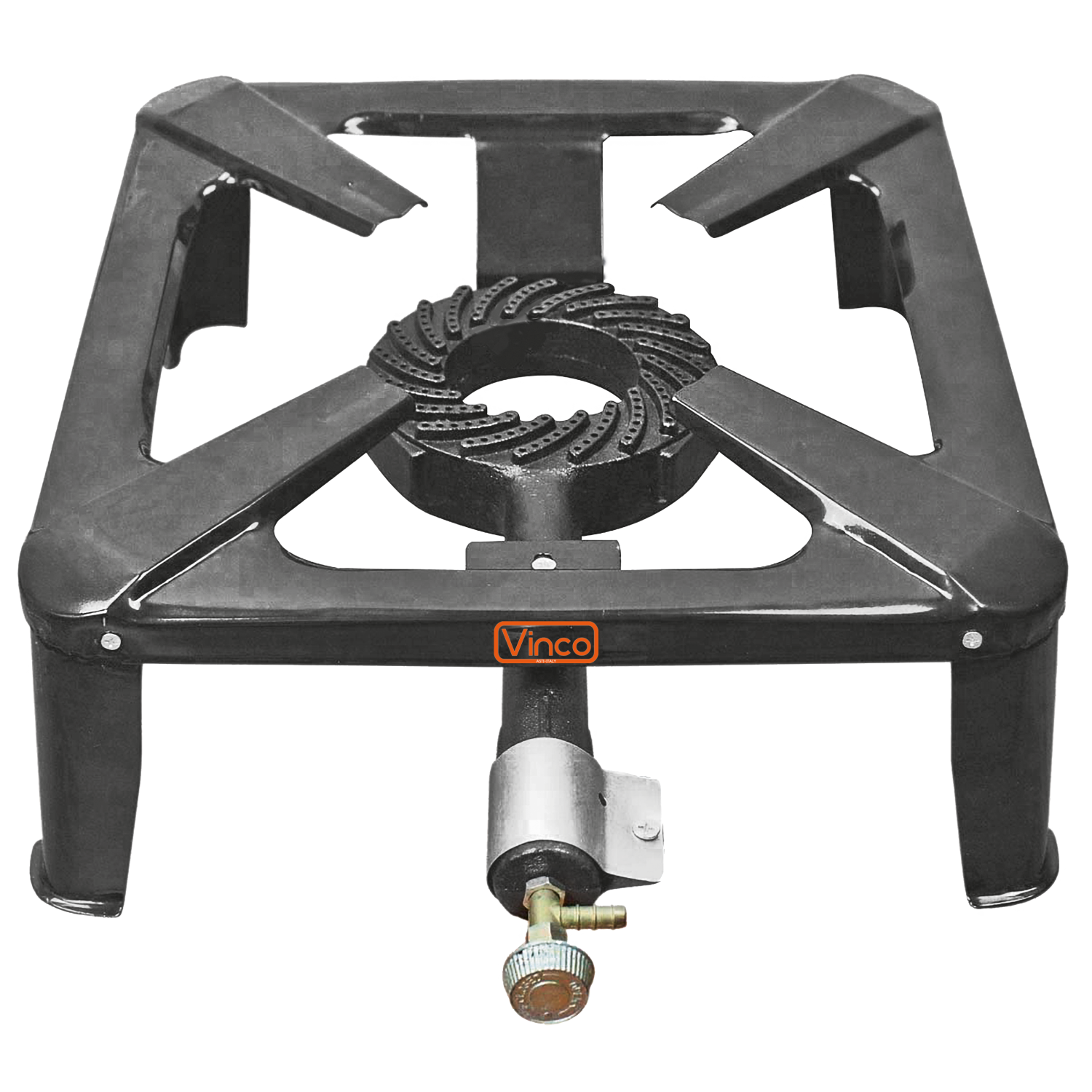 Fornello a gas(GPL) per uso esterno Vinco a un fuoco. Dotato di bruciatore in ghisa da 12,5 cm con fiamma regolabile (potenza 8,0 Kw) e rubinetto regolatore gas in ottone. Base smaltata nero in acciaio. Ideale per cucinare all’aperto, in campeggio o per cuocere conserve e marmellate.