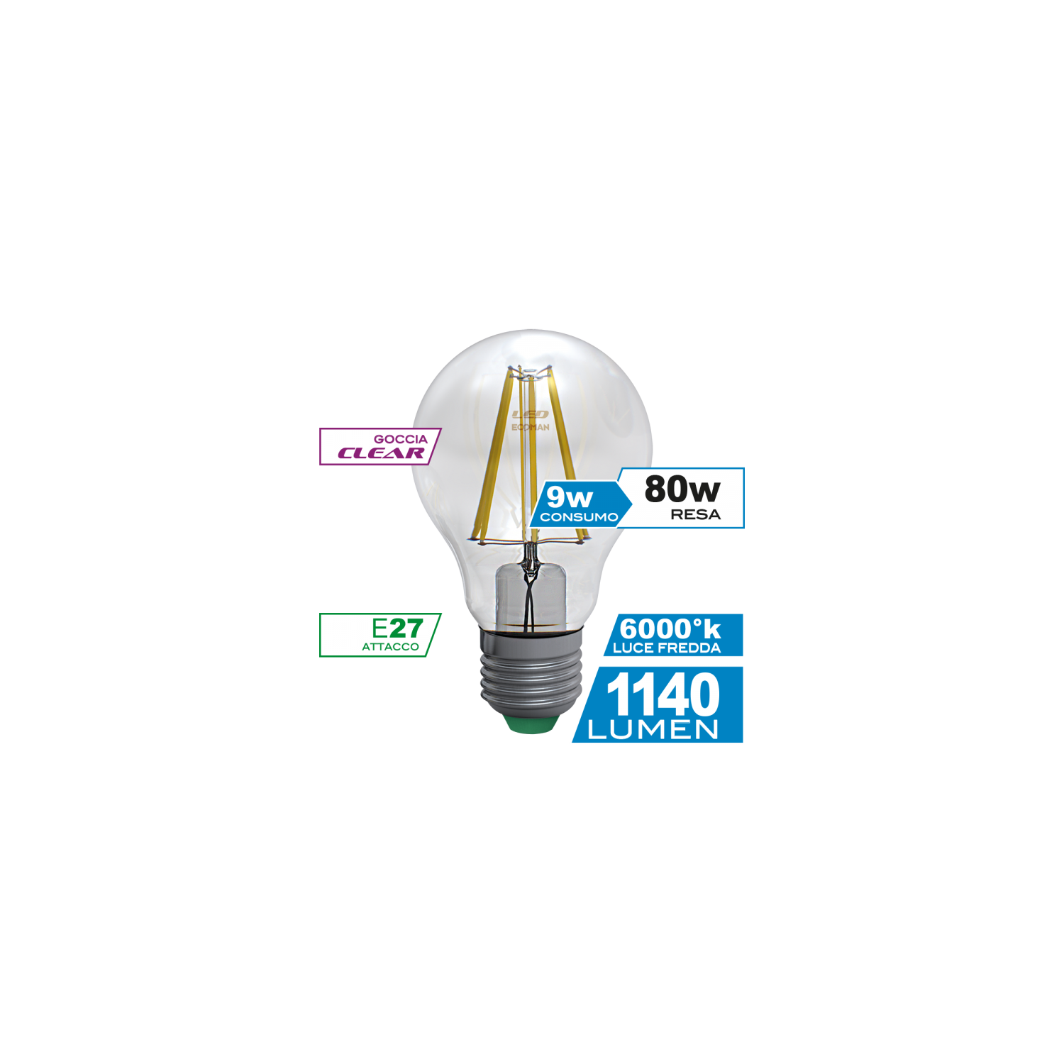Goccia Filamento Clear 9W E27 Luce Fredda