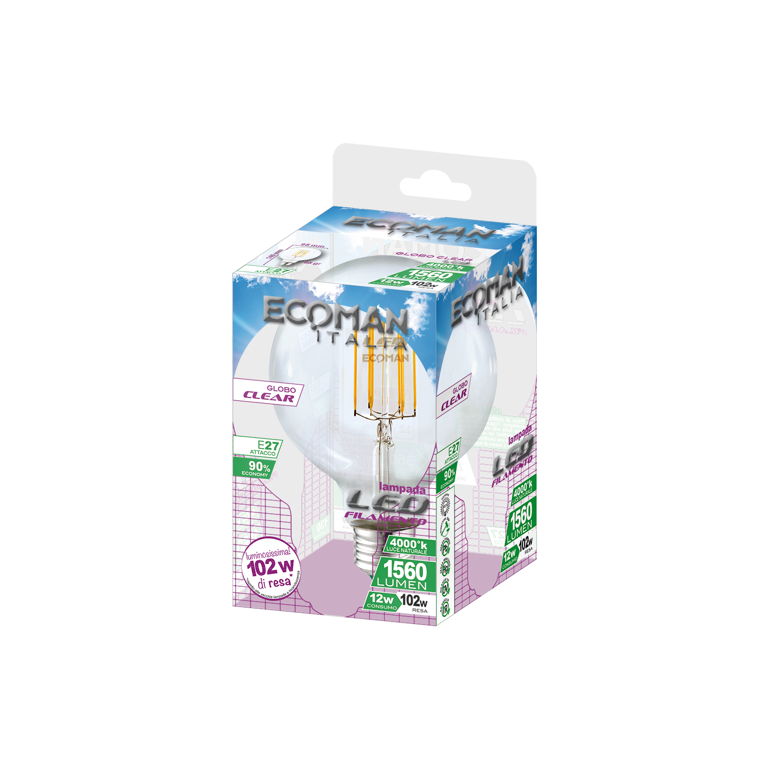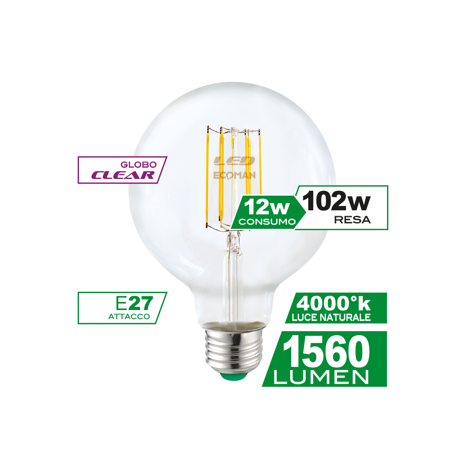 Globo 95 Filamento Clear 12W E27 Luce Naturale