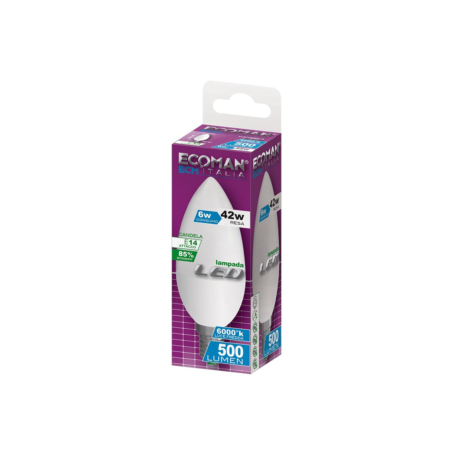 Descrizione: Led Mini Candela 6W E14 Luce Fredda Lampada Led alta luminosità di nuova generazione, a risparmio energetico e lunga durata. Sostituisce le vecchie lampade alogene ad incandescenza, riducendo i consumi e limitando l’impatto ambientale, grazie ai materiali riciclabili utilizzati, essendo priva di elementi dannosi come Mercurio e Piombo. Non pericolosa per l’uomo in quanto non emette radiazioni UV ed IR. Consumo 6W Equivalenza Incandescenza 45W Durata 20.000 h Cicli accensione 20.000 Attacco E14 Non Drimmabile Angolo Luce 270° Specifiche tecnicheLuce fredda : 6500°k Intensità Luce 500 lumen Intensità Corrente 47 mA Potenziale 220-240V Classe Energetica A+ Fattore Potenza ? 0,5 Resa Cromatica ? 80 Tempo di Innesco < 0,2 secondi Intensità di Picco cd Fattore di Mantenimento Flusso Luminoso al termine della vita della lampada % Coerenza dei Colori SDCMDimensioniDiametro 37 mm Altezza 106 mm Peso 42 grammi