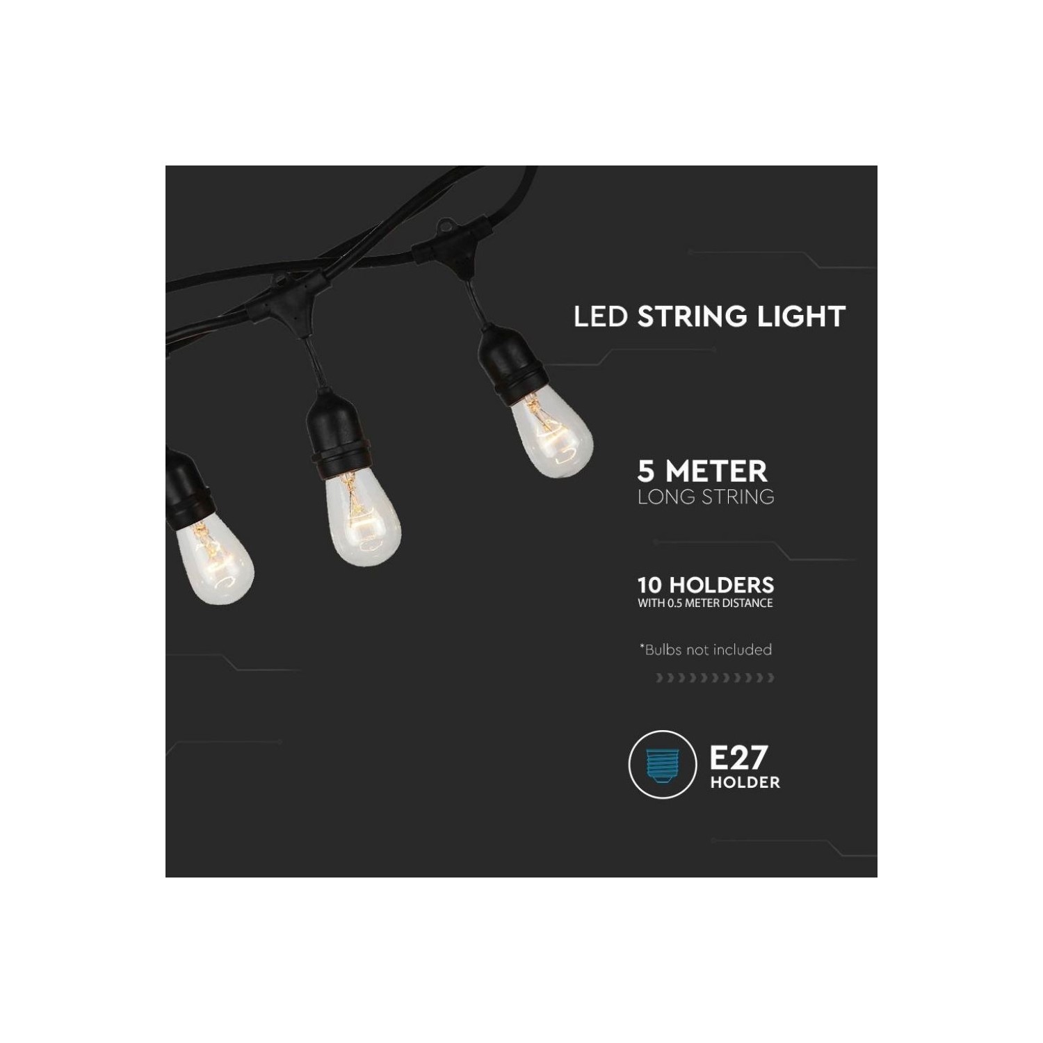 V-TAC Catenaria 5mt con 10 Attacchi E27 IP65