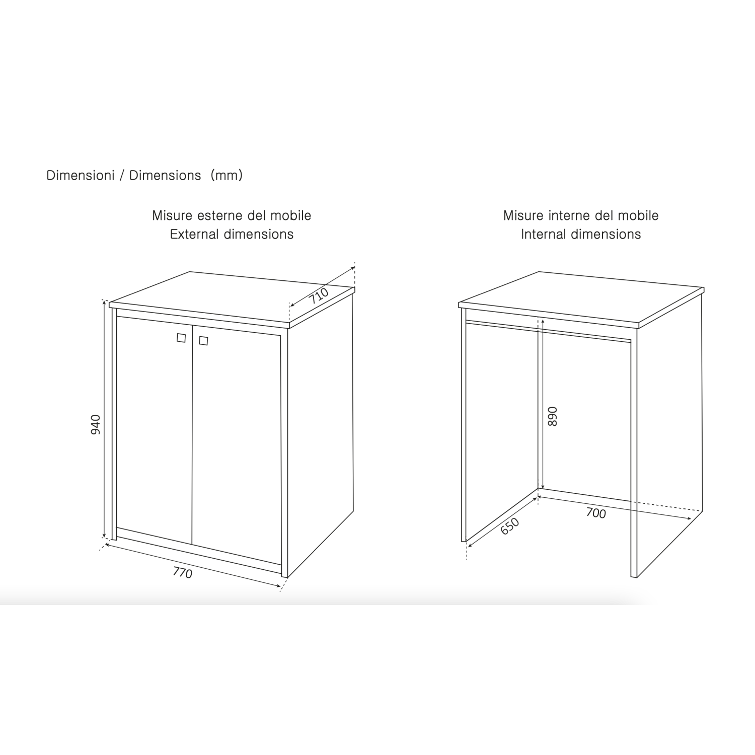 Mobile in materiale plastico resistente all’acqua, con sportelli coprilavatrice