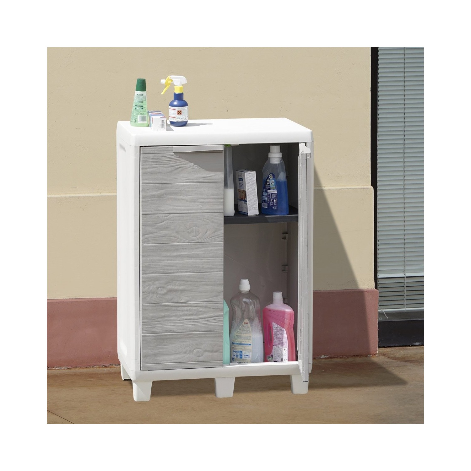 Mobile a 2 ante, con 1 ripiano posizionabile a diverse altezze.