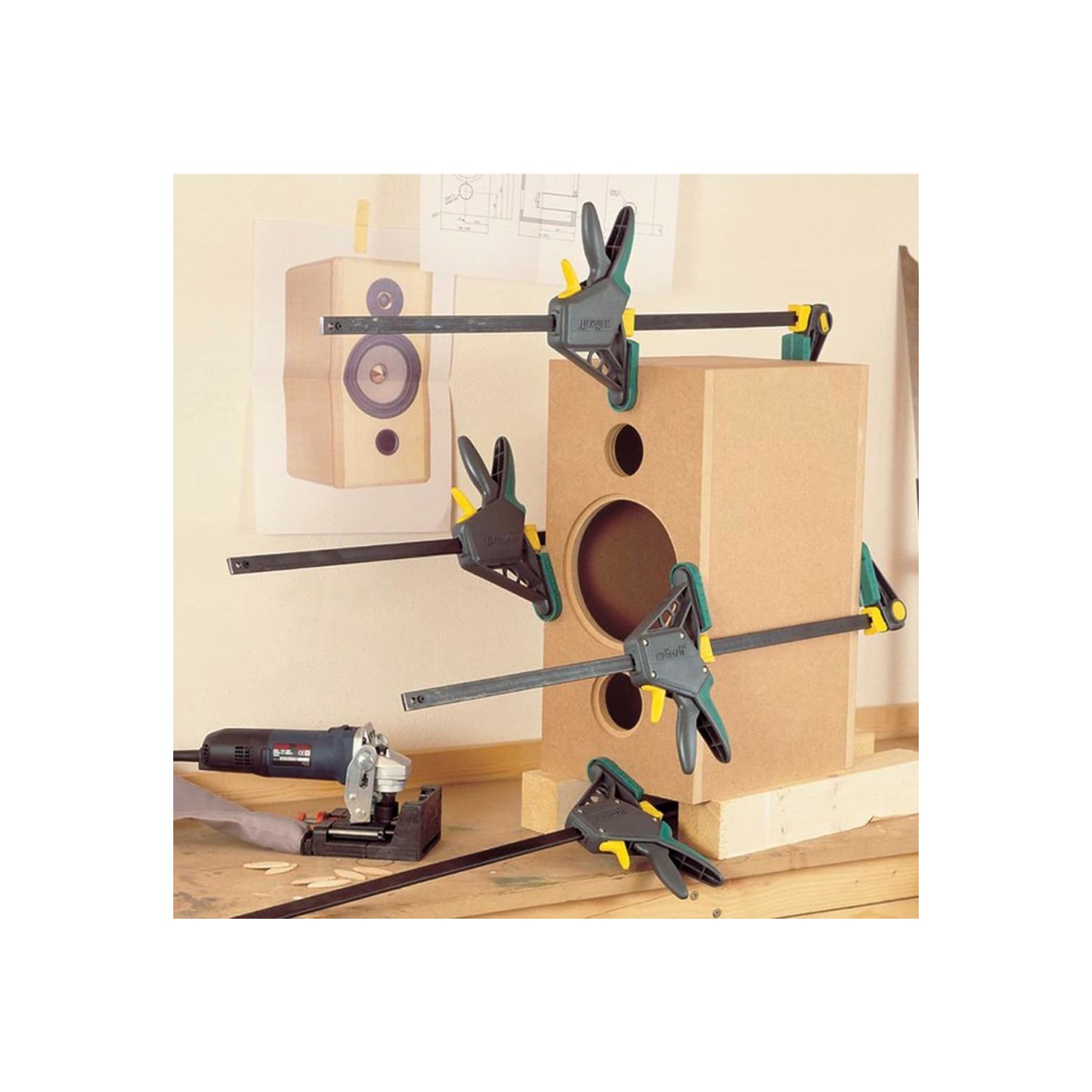 Questo morsetto ad una mano EHZ Pro 100-915 della wolfcraft sarà una scelta eccellente per un rapido, comodo e sicuro serraggio.