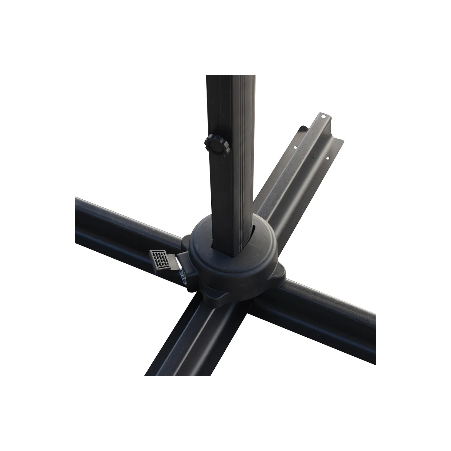 Ombrellone lampara da giardino Deluxe Esté Struttura tubolare in alluminio Copertura 100% poliestere 240 gr 8 stecche in acciaio al carbonio Manovella per apertura ombrellone e braccio in plastica ABS Rotazione a 360° Pedale di blocco rotazione Facilmente richiudibile Sostegno a croce incluso Kit e istruzioni di montaggio incluse Tubo ovale: l. 77 x p. 55 mm (spessore 1,5 mm) Palo di sospensione: l. 25 x p. 40 mm Misure: l. 300 x p. 300 x h. 275 cm Altezza stecche: h. 210 cm Colore: tortora Pulire con un panno umido