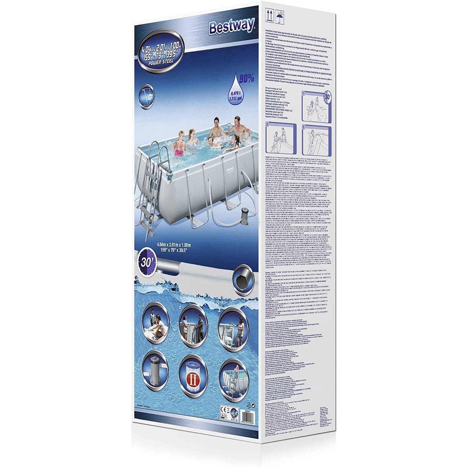 Set Piscina Power Steel Rettangolare 13'3" x 6'7" x 39.5" 4.04m x 2.01m x 1.00m water capacity ?90??6,478L (1,711gal.)