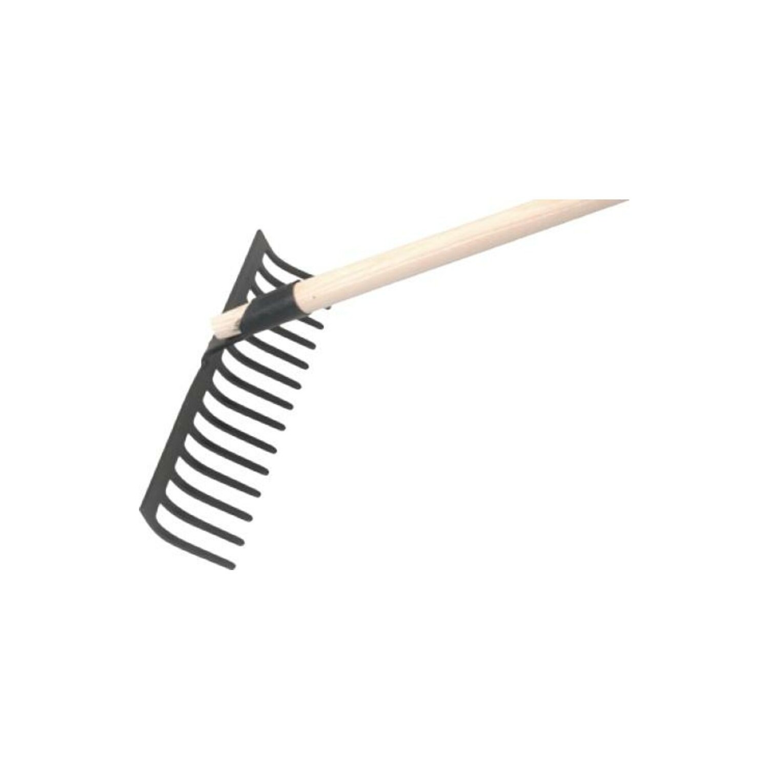 DESCRIZIONE: Rastrello giardino verniciato nero a 14 denti con manico in legno DIMENSIONI: 150 CM ART: RASTF0014M