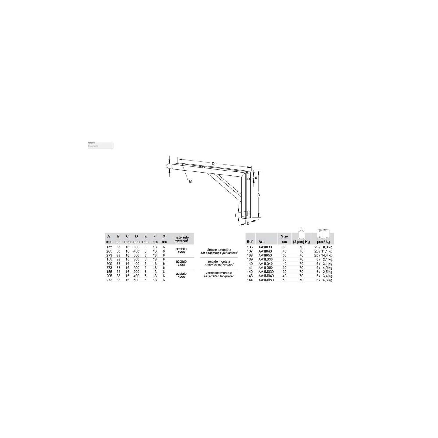 Portata: 70 kg (2 pz)