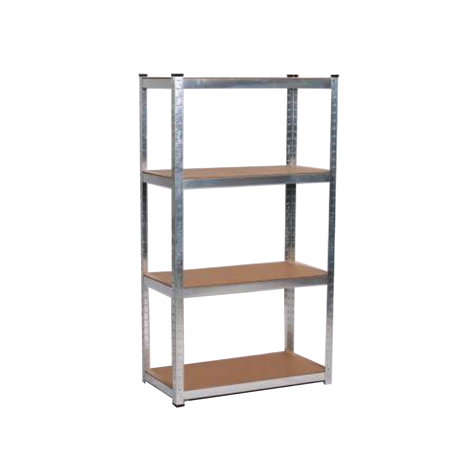 Scaffalatura ad incastro realizzata con struttura in acciaio galvanizzato e 4 ripiani rinforzati in MDF, completamente regolabile in altezza in base alle proprie esigenze.