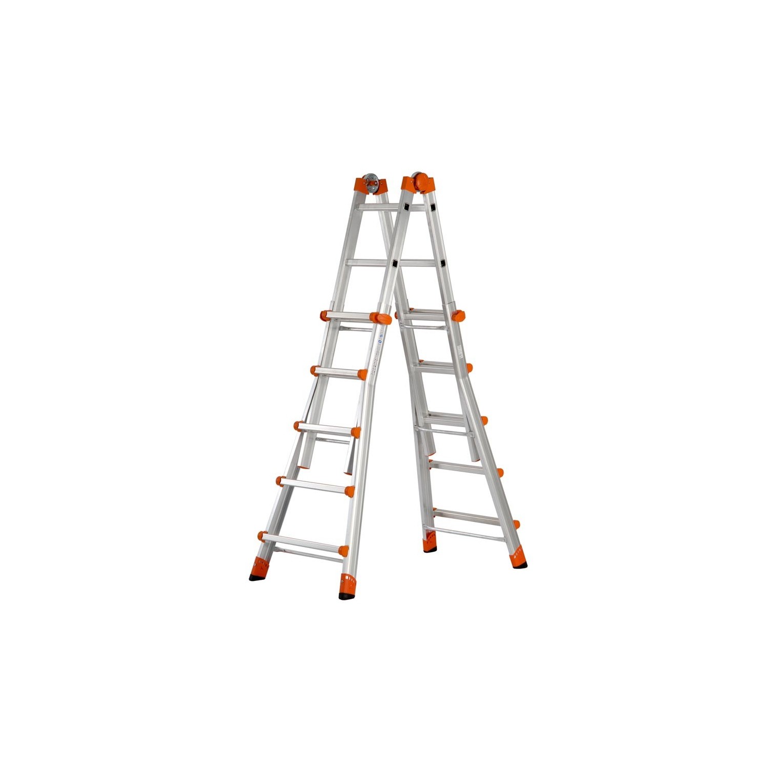 Scala multifunzione telescopica "PEPPina" Gierre in alluminio, 5+5 pioli, permette di raggiungere diverse altezze di lavoro e può essere usata in tre configurazioni: come scala a portafoglio / doppia, oppure zoppa (quando c'è un dislivello) oppure tutta estesa (configurazione singola) con l'aggiunta di barra stabilizzatrice in conformità con la norma EN131-4.