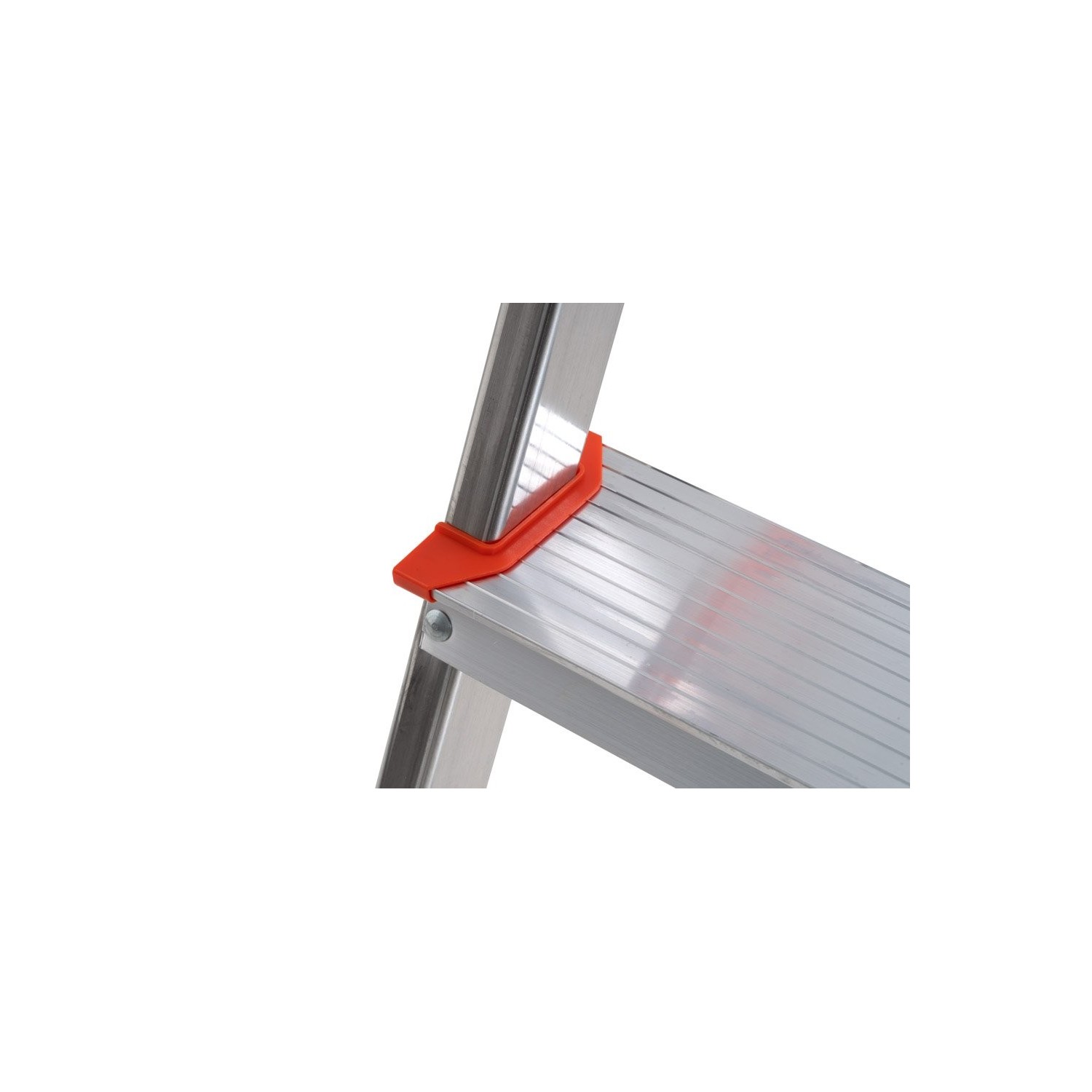 Sulla scala casalinga Gierre Scalamia AL170 è possibile aggiungere una comoda cover portautensili disponibile come accessorio (rif: D4032). Due corde antiapertura conferiscono maggiore stabilità, insieme ai piedini antiscivolo zigrinati. Il gradino zigrinato da 81 mm è fissato con un rivetto passante, inoltre è dotata anche di una copertura esterna del gradino antitaglio.