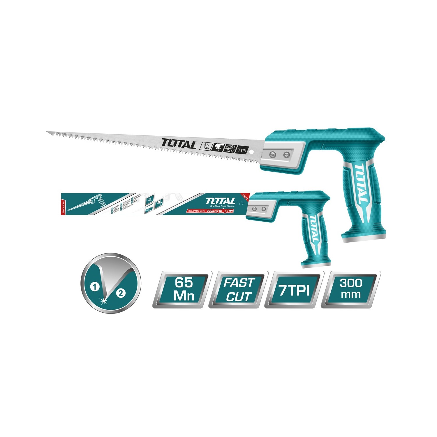 SEGA A PUNTA DESCRIZIONE: lama della sega: 300 mm materiale: Taiwan SK5 impugnatura: ergonomica, morbida a pressione in TPR