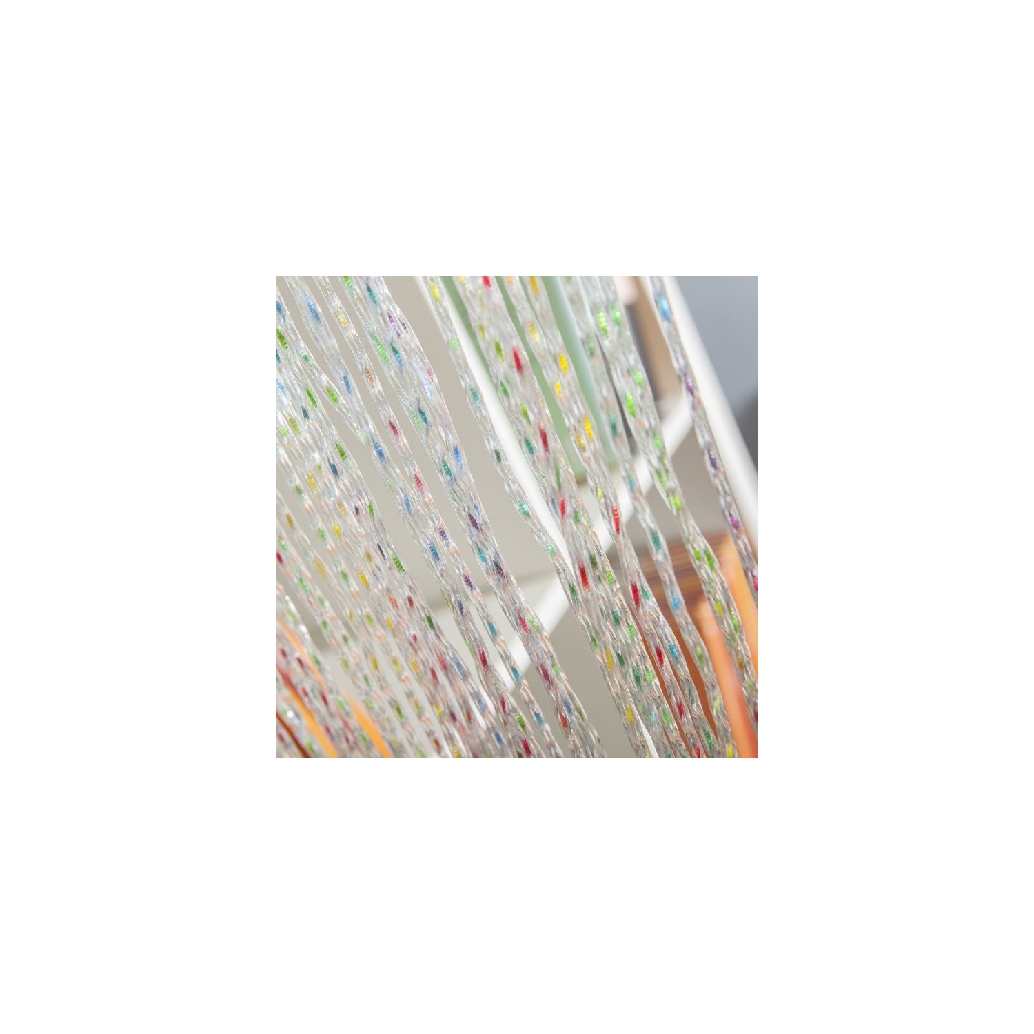 Tenda in PVC morbido e atossico. Supporto in PVC rigido. Idele per interno ed esterno. Grazie al materiale in cui è realizzata, la tenda Rainbow non produce alcun rumore di urto o fruscio. Si caratterizza per il delicato effetto cangiante. 125x230 cm (180 fili)