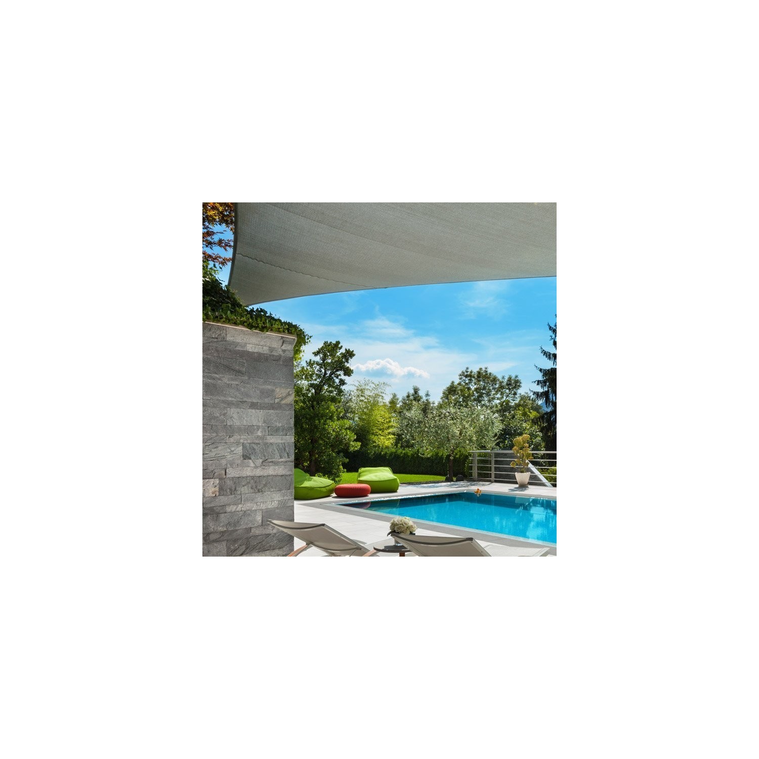 Tenda a vela triangolare realizzata in polietilene ad elevata densità (180 gr/mq circa) con anelli in acciaio e bordi rinforzati. Disponibile in tre misure e due colori. Confezione: borsa trasparente con maniglia e cerniera. Dimensioni: 5x5x5 m codice: 824/6