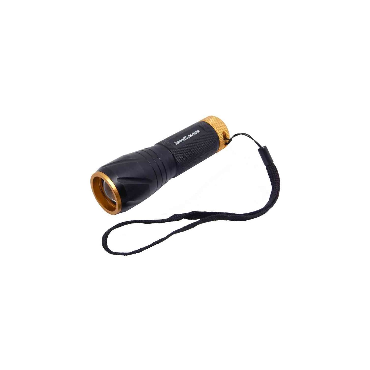 Grado di portezione: IPX4 - Protetto contro spruzzi d'acqua Alimentazione: 3 batterie Duracell AAA (incluse) Illuminazione: 1 LED CREE XP-E R4 - 5 Watt Luminosità: 300 lumen Portata della luce: 200 metri Autonomia: 2 ore Materiale: alluminio Funzioni: Ottica lenticolare regolabile zoom/focus. ON/OFF. Luce intensità: 100%, 75%, 35%. Luce lampeggiante. Luce sequenza SOS. Pulsante soft touch e vano batterie estraibile Dimensioni: 111 x 35 (diametro) mm