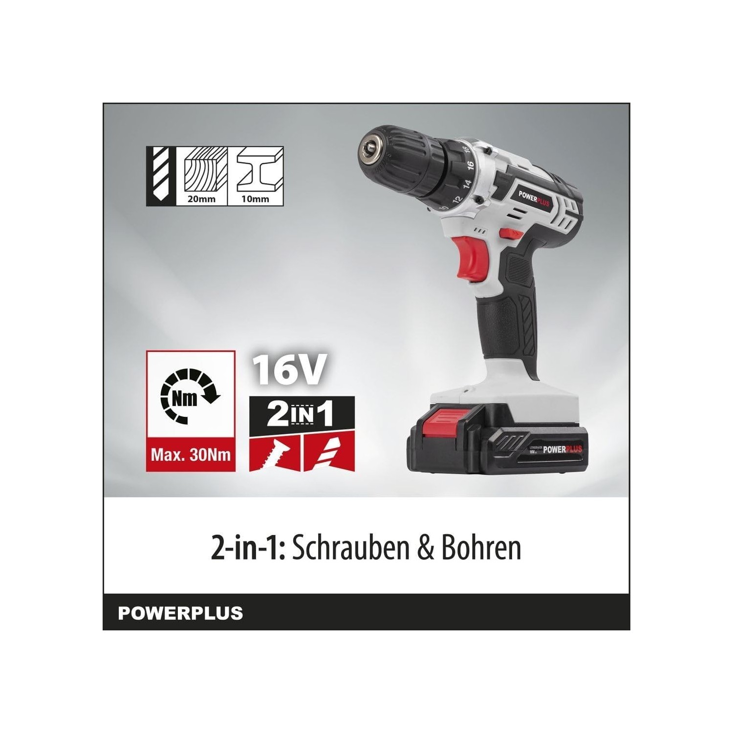 Questo trapano a vite senza fili da 16 V Powerplus è ideale per le operazioni di avvitamento e foratura facili in casa e in giro.