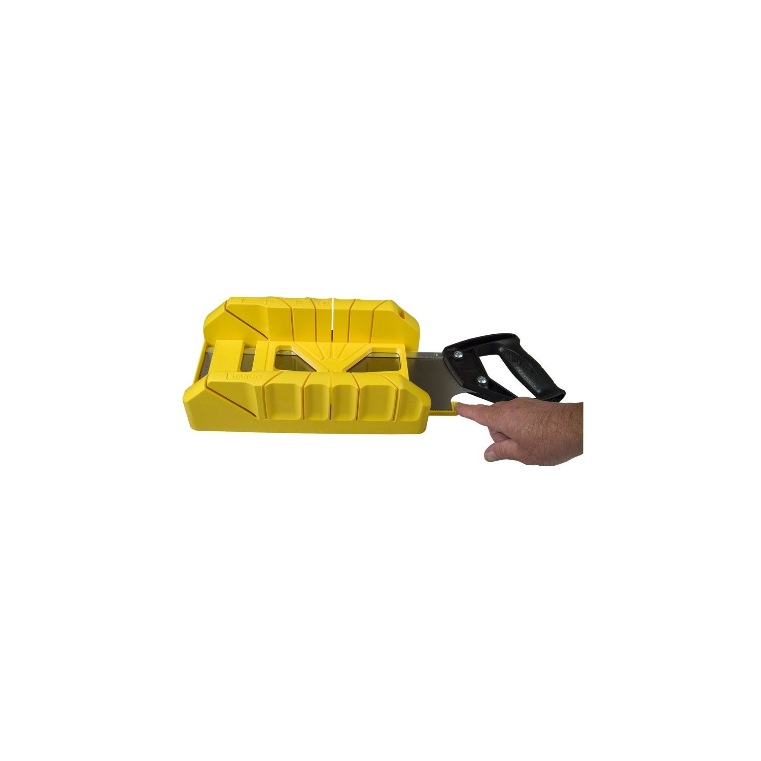 Nuovo sistema brevettato per contenere segacci da 300 e 350 mm, con meccanismo di estrazione molto semplice e veloce. Angolazione di taglio 45°, 90° e 22,5°. Base antiscivolo con fori per ancoraggio alla base di lavoro. Con sega a dorso mm.350 e portamatite.