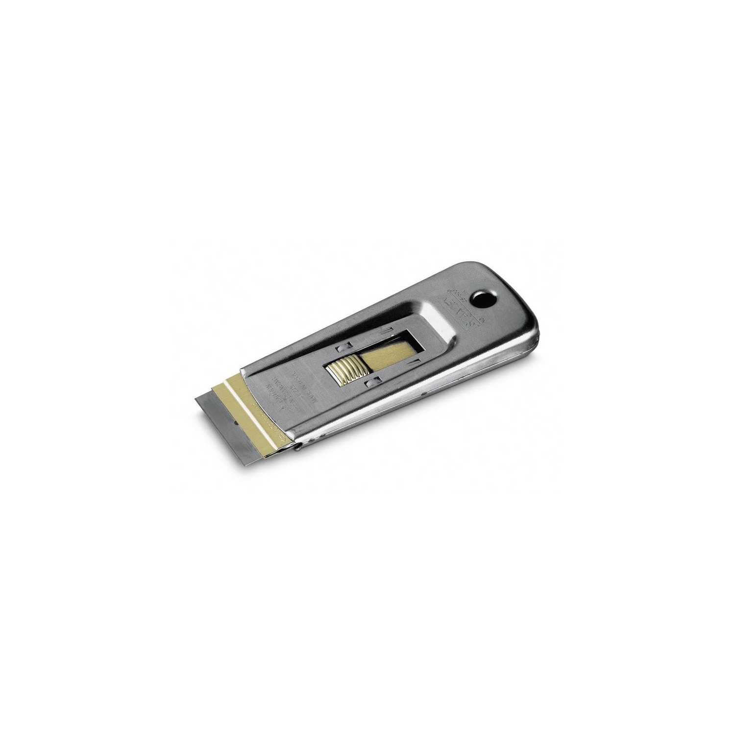 Corpo in acciaio. Lama tipo rasoio retrattile. Fornito con 5 lame in omaggio.
