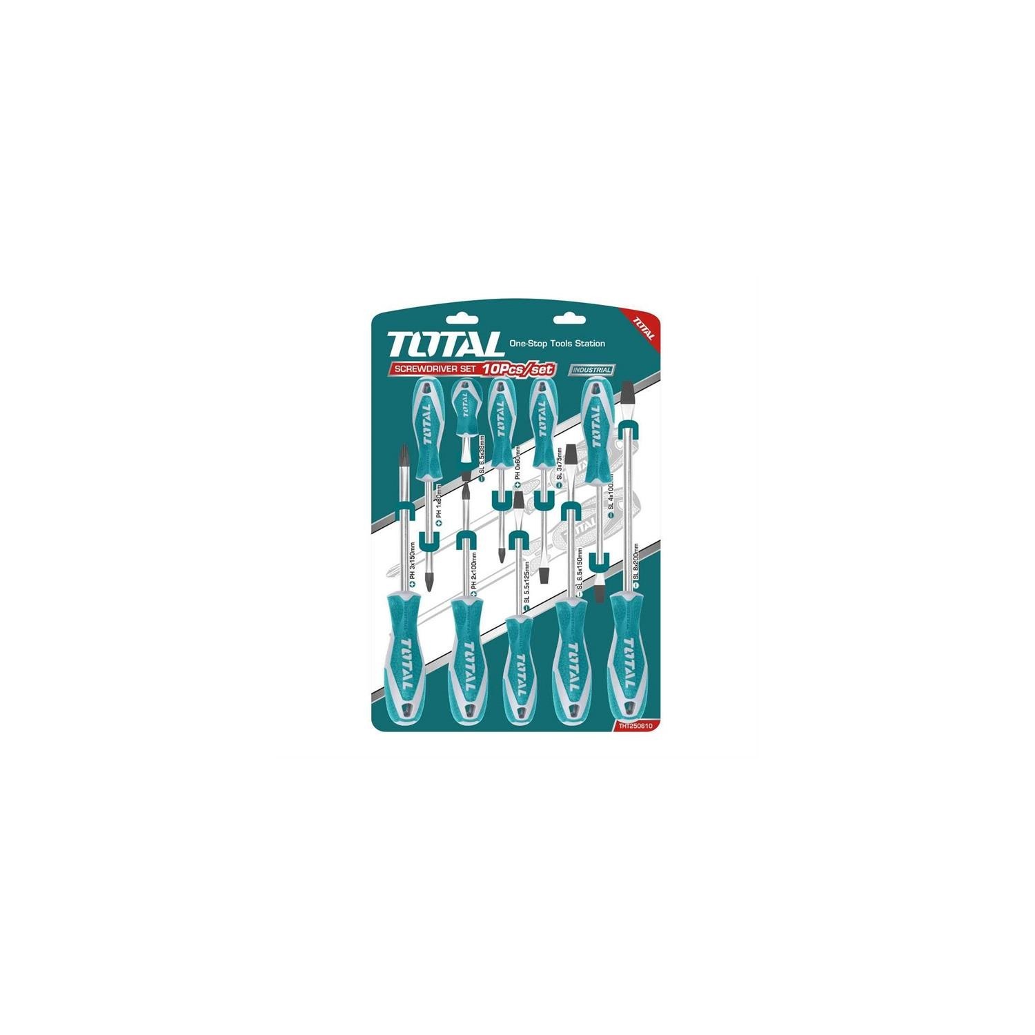 Set da 10 cacciaviti Materiale: Cr-V Misure: SL3.0*3*75 SL4.0*4*100 SL5.5*5*125 SL6.5*6*150 SL8.0*8*200 SL6.5*6*38 PH0*3*60 PH1*5*80 PH2*6*100 PH3*8*150