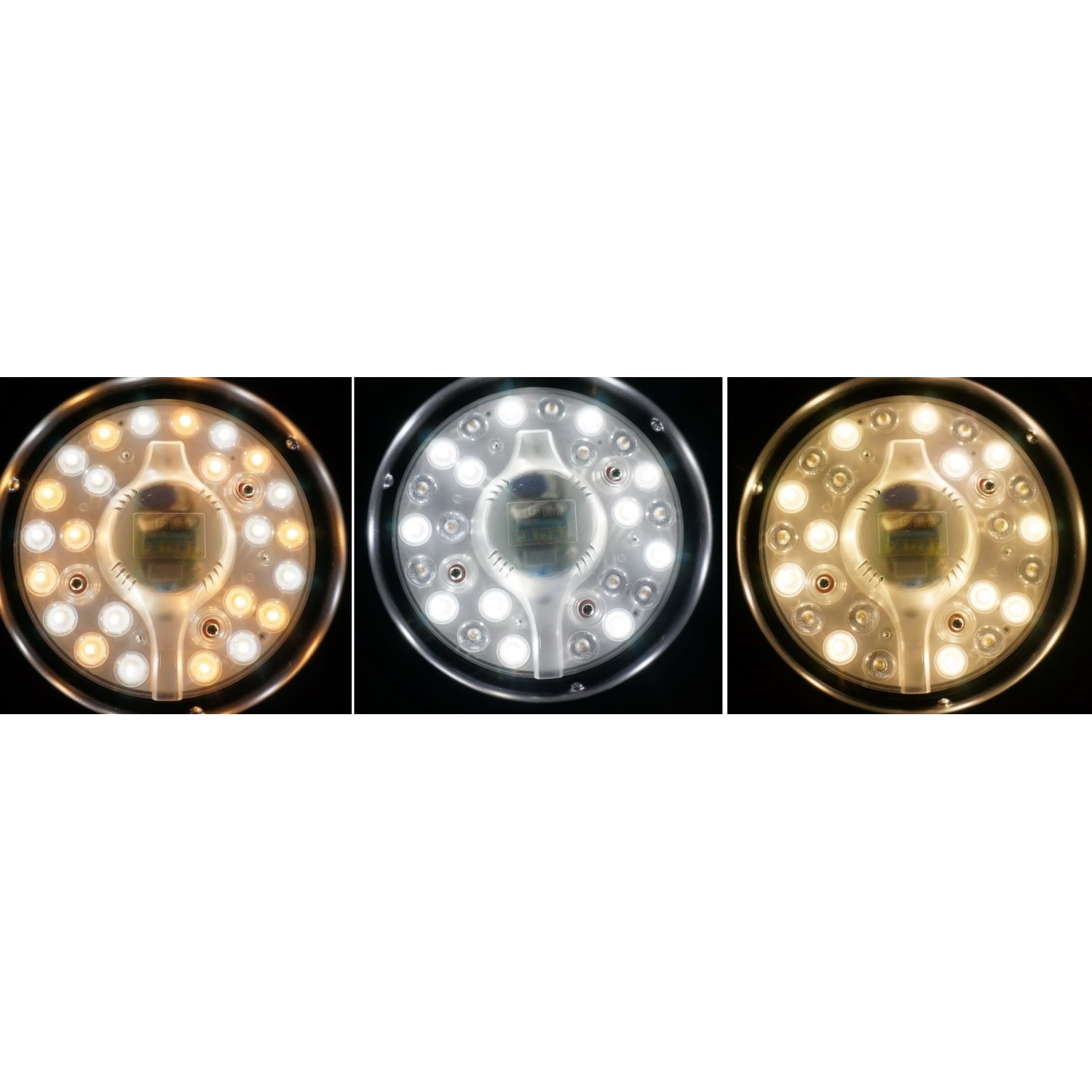 E’ inclusa la lampadina a LED (12 W) con tre possibilità di colore.